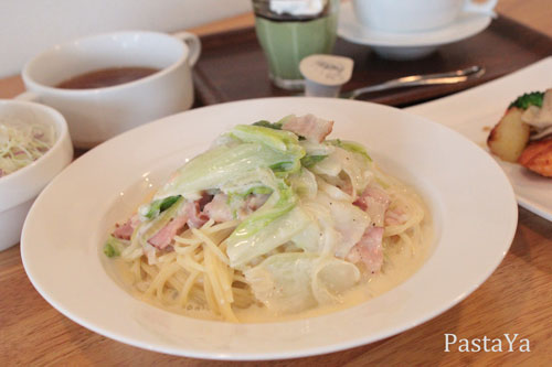 こちらの白菜とベーコンのクリームパスタは