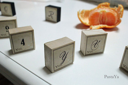 積み木に貼っていきます。