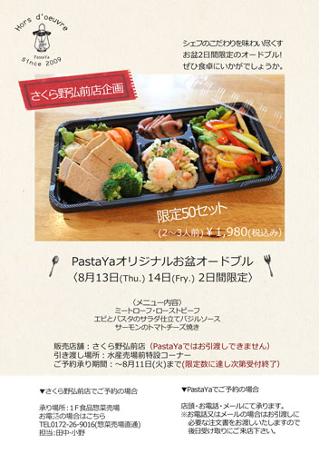 【企画:さくら野弘前店】PastaYaお盆オードブルのご案内です^-^