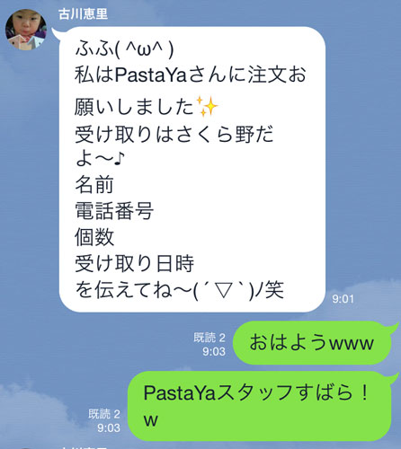 メールでPastaYaメンバー様が