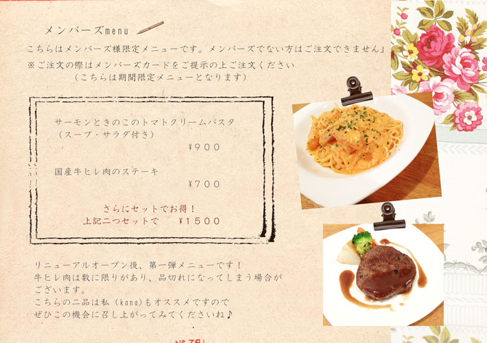 メンバーズ様限定パスタです♪