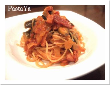 「茄子とベーコンのトマトソース」