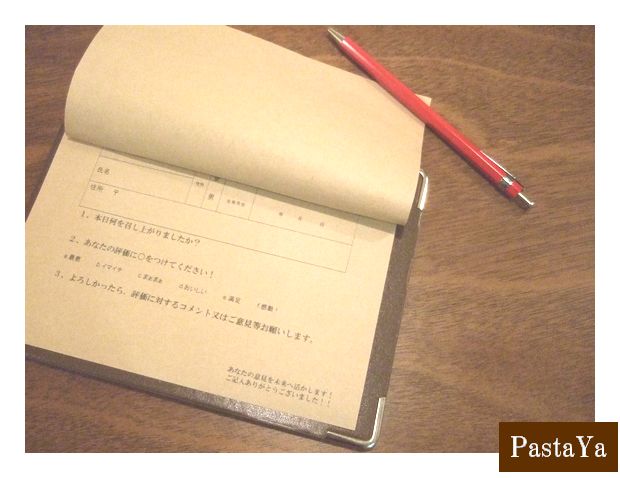 PastaYaへの感想や意見を記入していただいています。