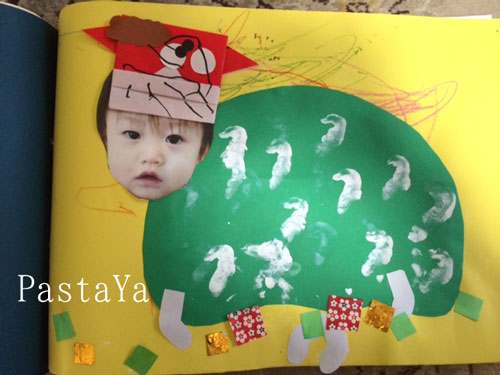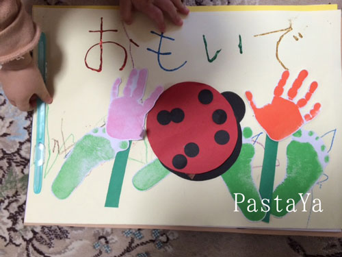 きっとこの落ち葉も娘が貼ったんでしょうね。