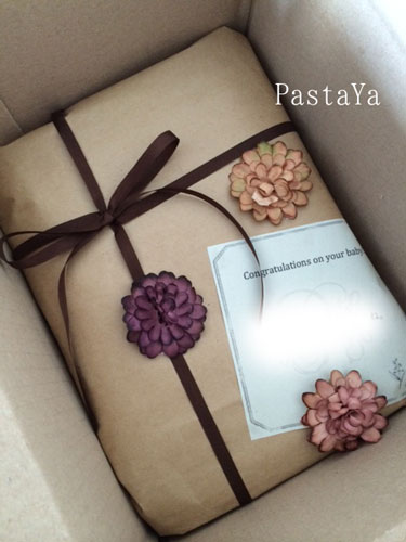 こちら先日オンラインショップにてご注文いただいたギフトラッピングの一例です。