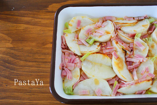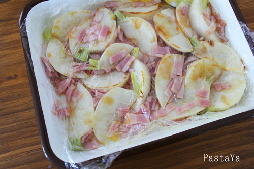 そしてベーコンと焼いたカブを容器にうつして
