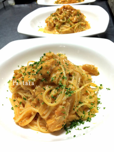 パスタのカニのトマトクリームパスタ
