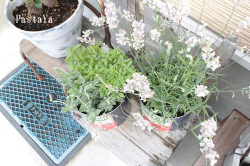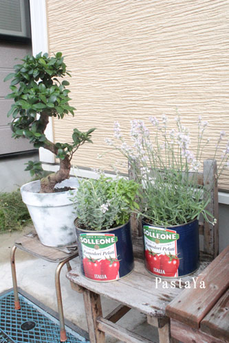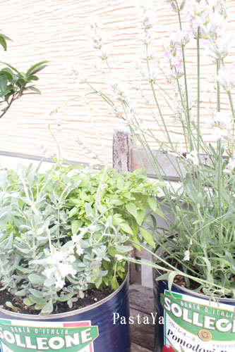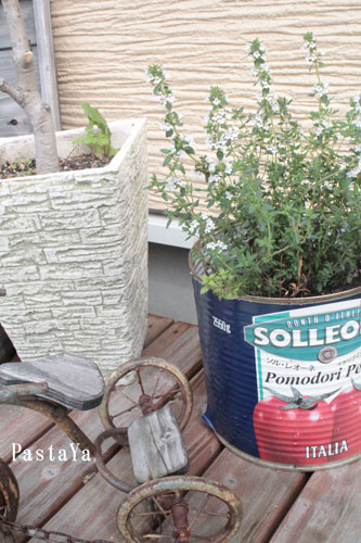 ハーブはお店で使っているトマト缶に☆